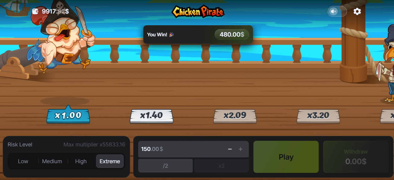 Unlike traditional slots with spinning reels, Chicken Pirate introduces a crash-style gameplay. Here's how it works: